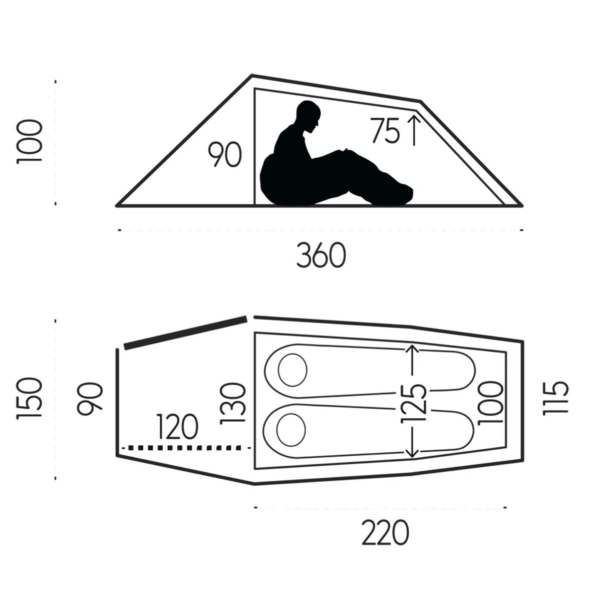 The vestibule is spacious for a two-man tent and there is plenty of room for gear. The flysheet and inner tent are connected, making handling easy and protecting the inner tent from rain while pitching.