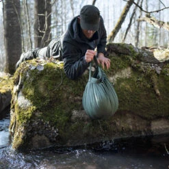 Unscrew the wide mouth opening and fill the bag with water from any source and connect the included tube between the bladder and the Mini. After filling, hang the reservoir with the MINI below it from a tree, the back of your pack, or simply hold it up with your hand. Water will flow through the MINI to produce fresh, clean water for drinking and cooking.