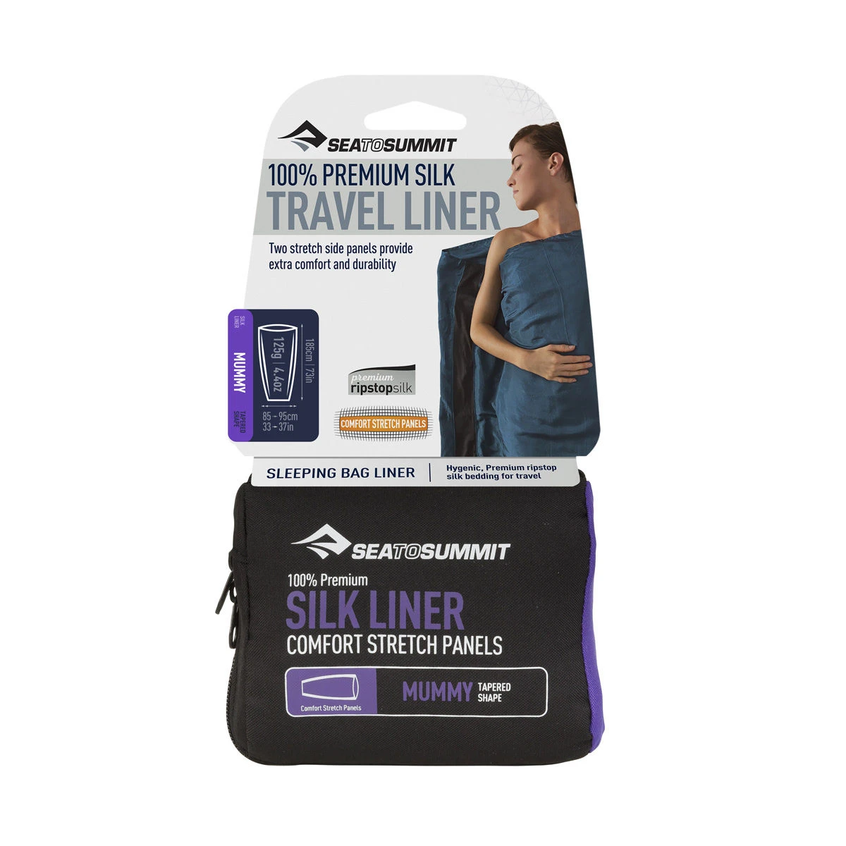 Sea to Summit make their premium silk travelling sheets from the finest ripstop silk and have added Polyester/Lycra stretch panels along the length of the seams. These stretch panels allow the liner to move with you when you turn, roll and curl up in the night.